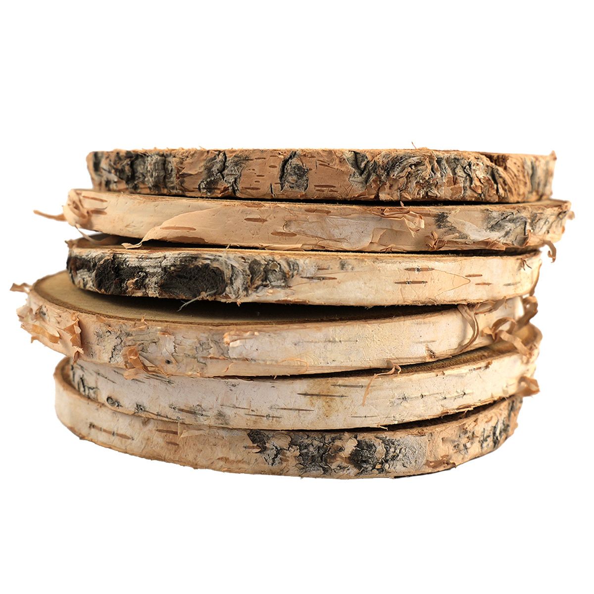 Natürliche Holzscheiben aus Birkenrinde, rund geschnitten à 12 Stück im Netz verpackt. Ideal für floristische Arbeiten, Tischdekorationen, Kränze oder Bastelprojekte.