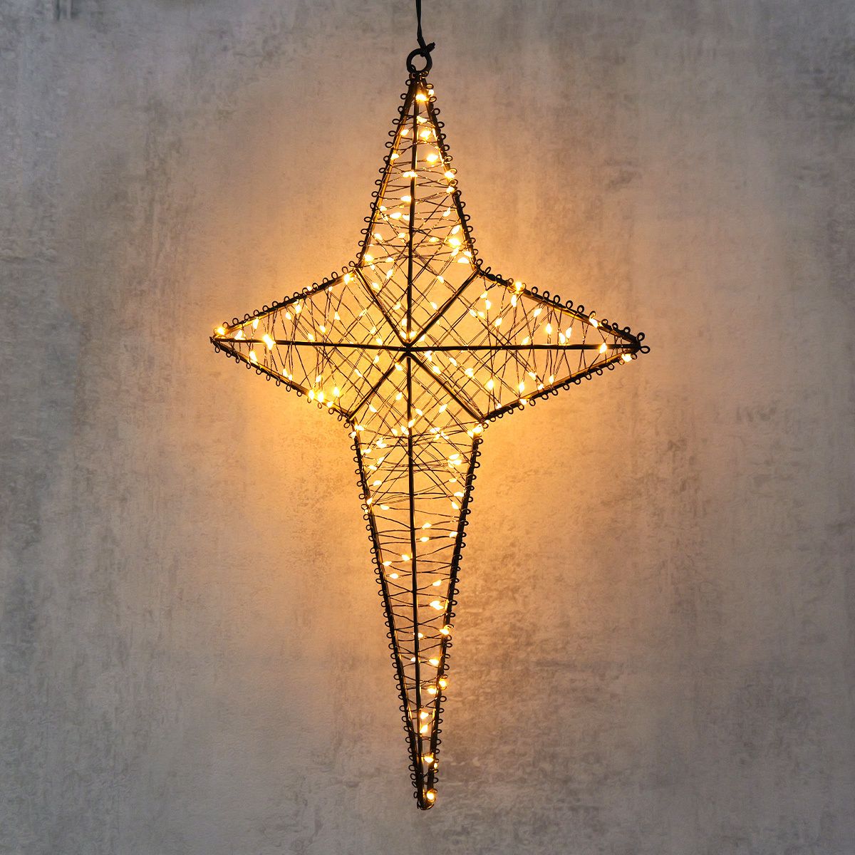 Die 150 warmweißen LEDs schaffen eine ruhige und stimmungsvolle Atmosphäre perfekt für besondere Anlässe oder als dezente Ganzjahresdekoration. Dieses leuchtende Kreuz setzt stilvolle Akzente und verleiht jedem Ort eine besondere Ausstrahlung.