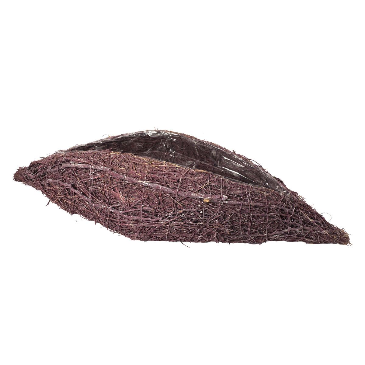 Pflanzgefäß in Rautenform aus Mühlenbeckia und Twiggy-Zweigen mit natürlicher Flechtstruktur. Geeignet für bepflanzte Arrangements oder dekorative Präsentationen. Mit integriertem Folienschutz.