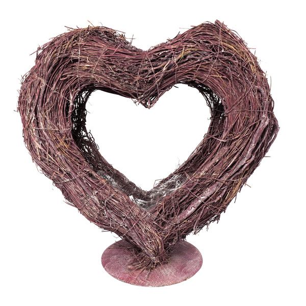 Dekoratives Pflanzherz aus Mühlenbeckia und Twiggy-Zweigen in eleganter Farbe Frosted Erika, geeignet für Innen- und Außenbereich. Ideal zum Bepflanzen oder stilvollen Dekorieren. Ein besonderer Blickfang für jede Jahreszeit.