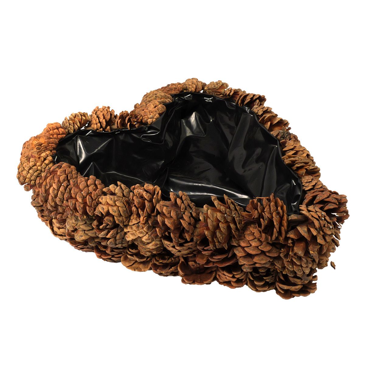 Natürliches Pflanzgefäß in Herzform aus echten Zapfen. Handgefertigt, dekorativ und mit integriertem Kunststoffeinsatz für saubere Bepflanzung. Ideal für saisonale Arrangements und natürliche Dekorationen.