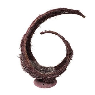 Pflanzschleife in Loop-Form aus Mühlenbeckia und Twiggy-Zweigen mit natürlicher Flechtstruktur. Geeignet für bepflanzte Arrangements oder dekorative Präsentationen im Innenbereich. Die aufrechte Form setzt florale Gestaltungen wirkungsvoll in Szene.