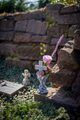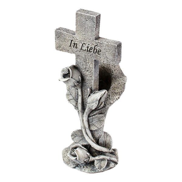 Vase mit Rosenranke und Kreuz "In Liebe"
